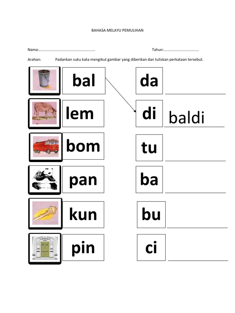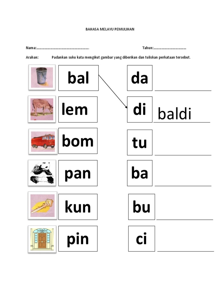 Pemulihan Khas Latihan Bahasa Malaysia Suku Kata Latihan Tema Kelas