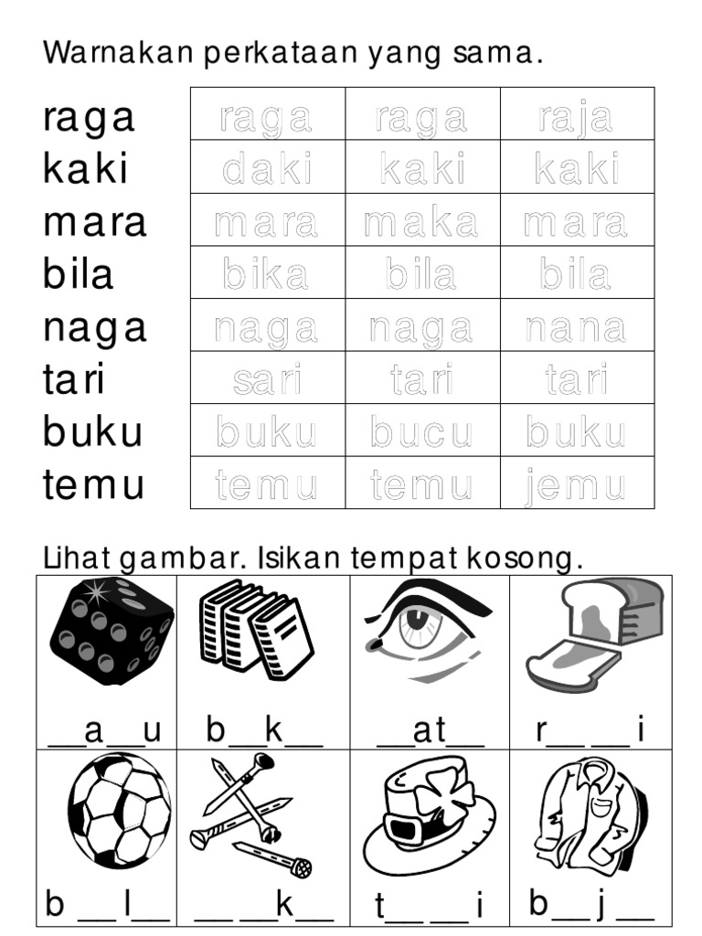 Suku Kata Kvkvk Latihan Bahasa Melayu Tahun 1
