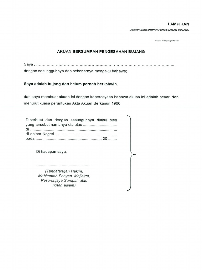 Contoh Surat Akuan Bujang Dari Pesuruhjaya Sumpah Backup Gambar