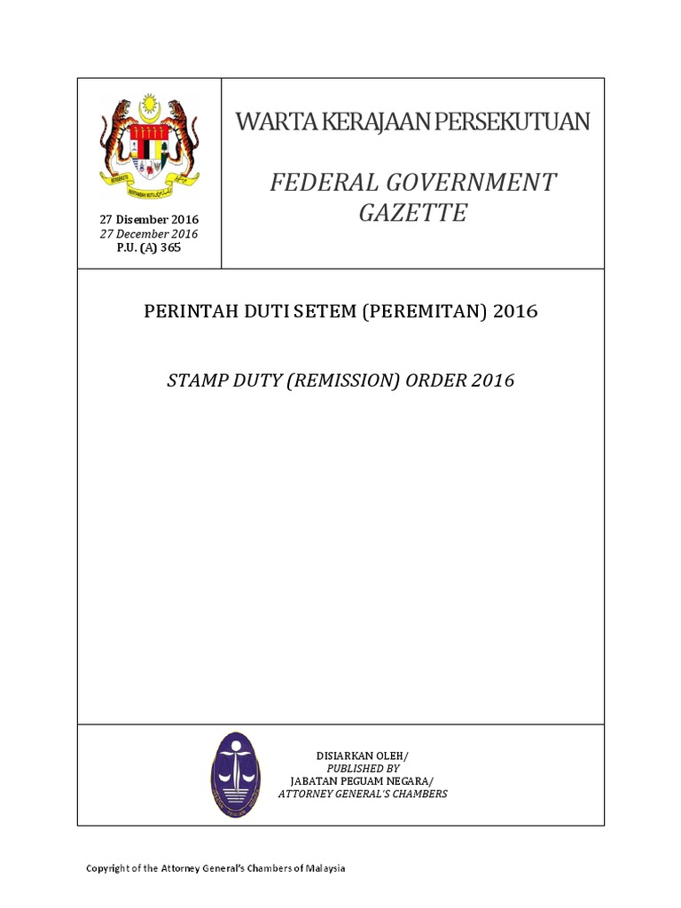 Perintah Duti Setem Peremitan 2018 Stamp Duty Remission Order Pdf Download Gratis