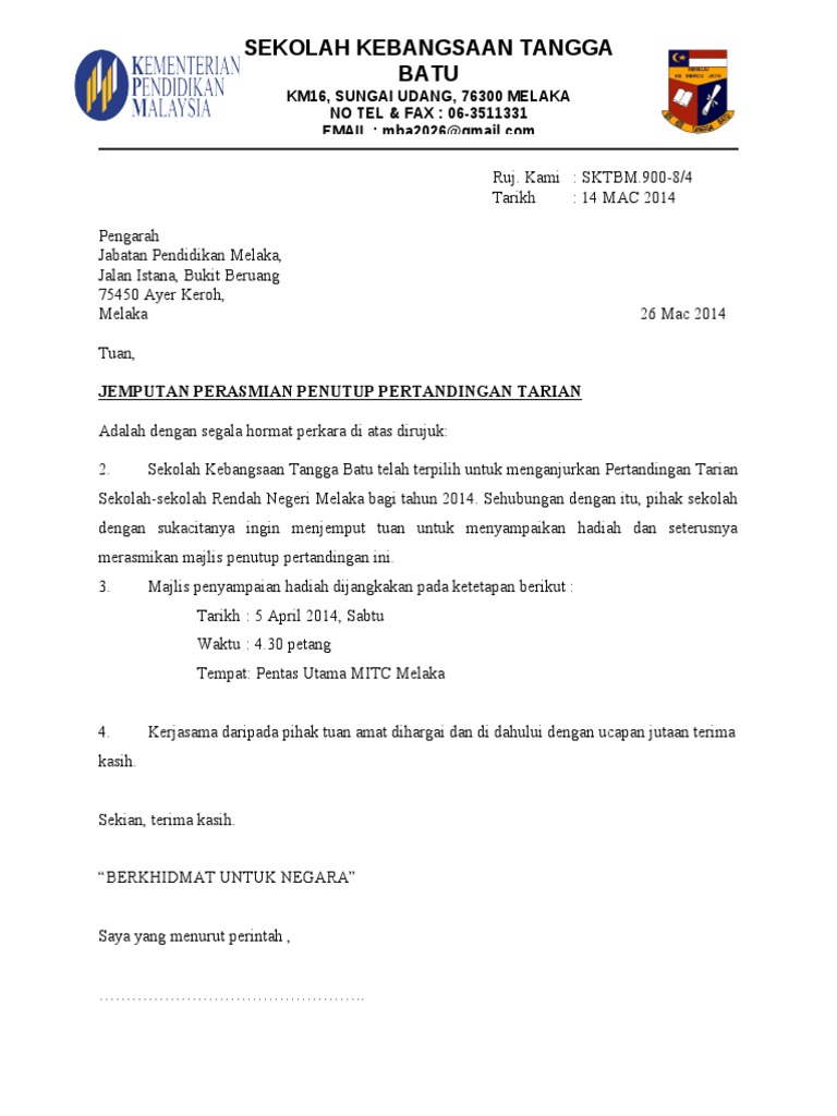 Contoh Surat Rasmi Jemputan Ke Program Surasmi G