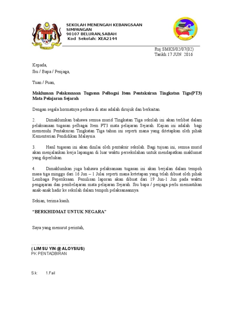 Surat Untuk Makluman Ibubapa Smstsp 2018