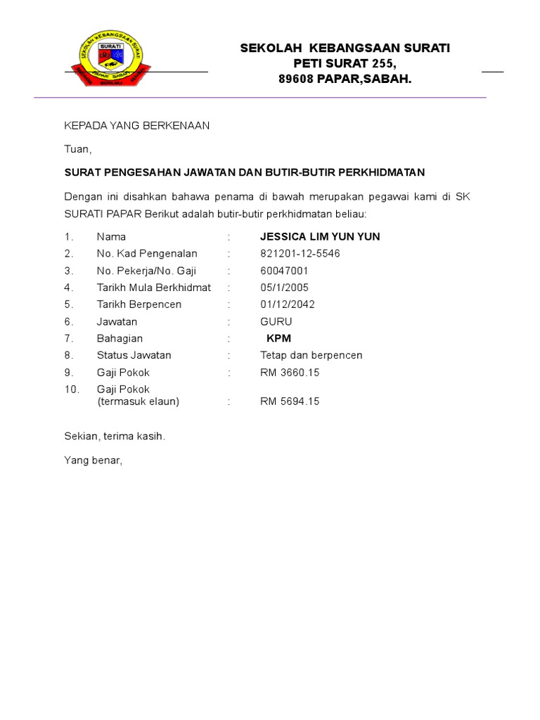 Image Result For Contoh Surat Pengesahan Gaji Surat Image Find Image