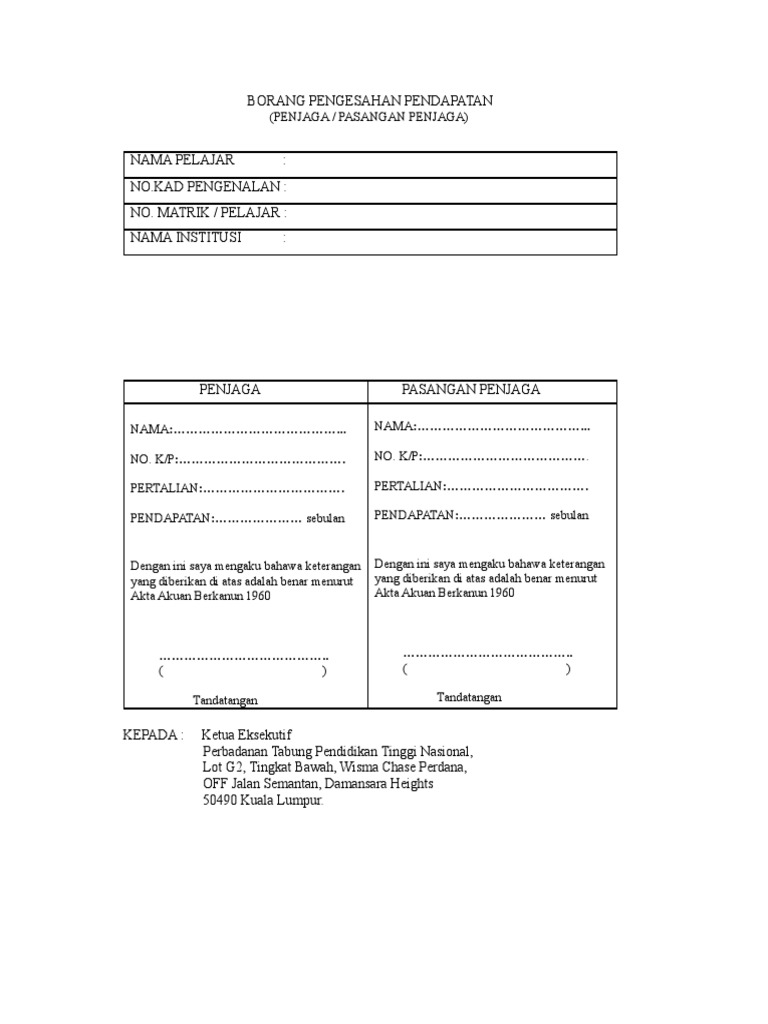 Surat Pengesahan Pendapatan Bagi Yang Bekerja Sendiri
