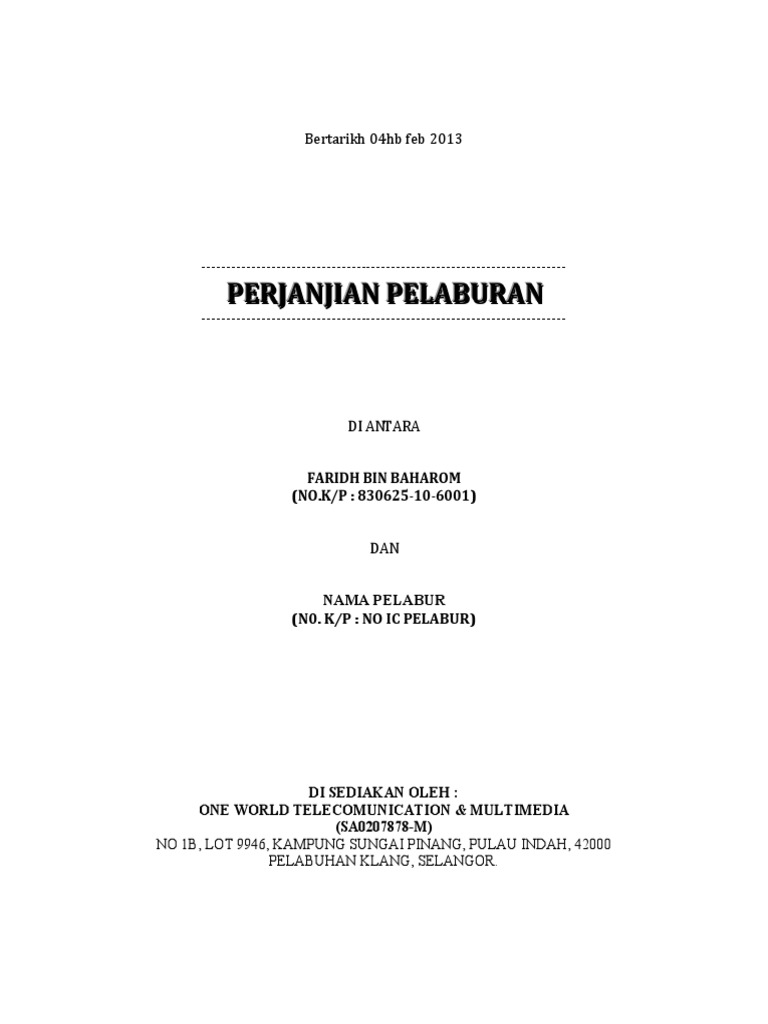 Contoh Surat Perjanjian Pelaburan Denai Rd Razif