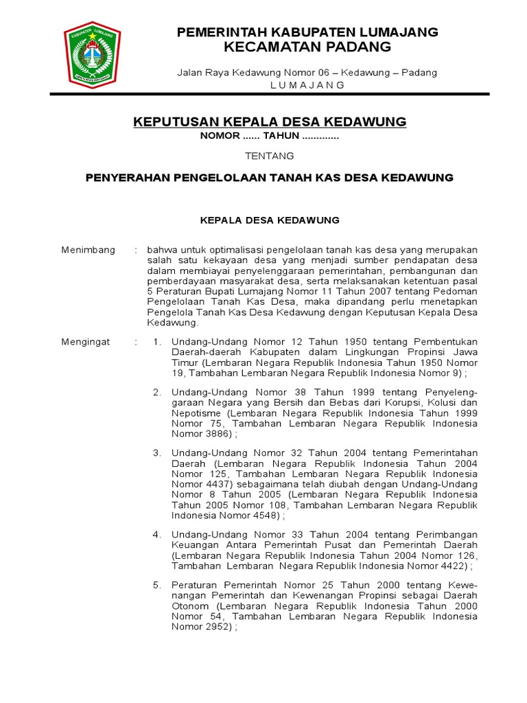 Doc Keputusan Kepala Desa Kedawung Penyerahan Pengelolaan Tanah Kas Desa Kedawung Eko Suswanto Academia Edu