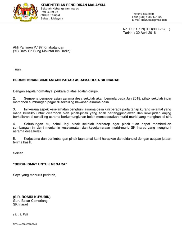 Surat Permohonan Bantuan Kewangan Pibg Surat Rasmi Z