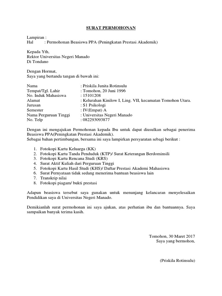 Surat Permohonan Pengajuan Beasiswa Ppa Docx