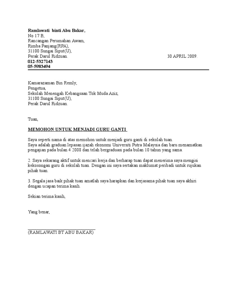 Contoh Cover Letter Permohonan Guru Surat Rasmi Ra