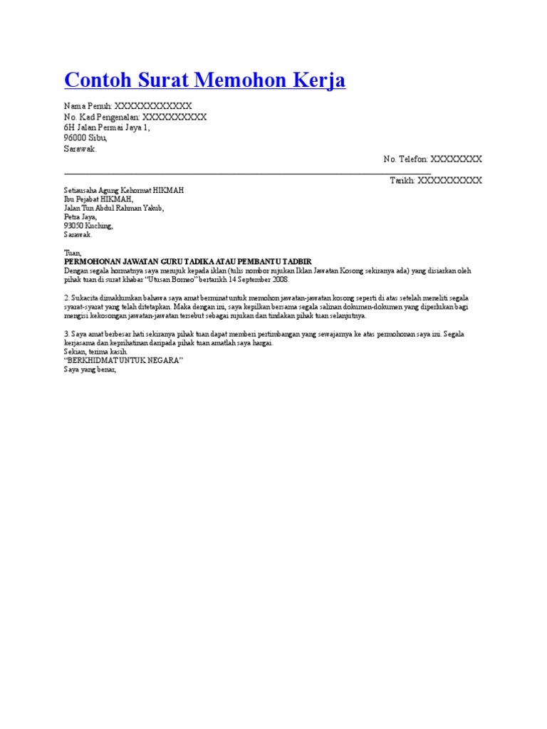 Contoh Borang Permohonan Kerja Doc