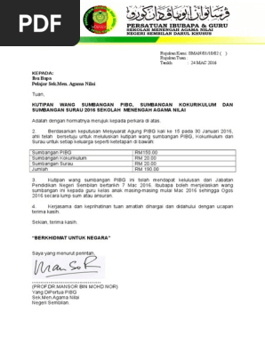 Surat Siaran Pibg Kutipan Bayaran Bayaran Tambahan Cute766