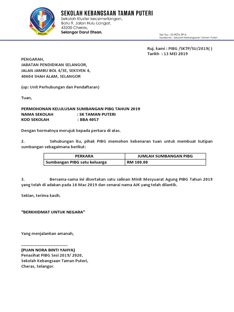 Contoh Surat Mohon Kutipan Sumbangan Dari Ahli Pibg