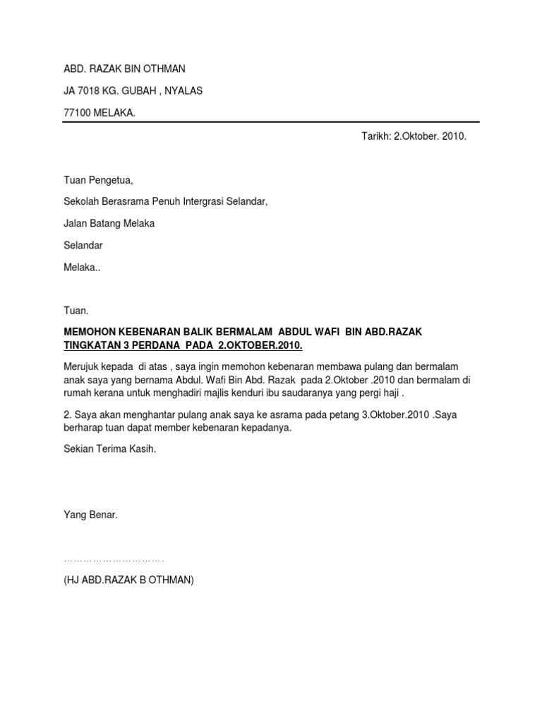 50525095 Surat Balik Bermalam Asrama