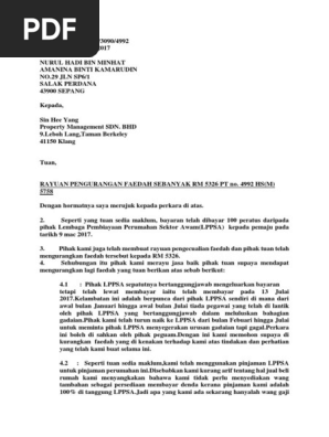 Surat Rayuan Pengurangan Bayaran Pinjaman Mara Rumah Aoi