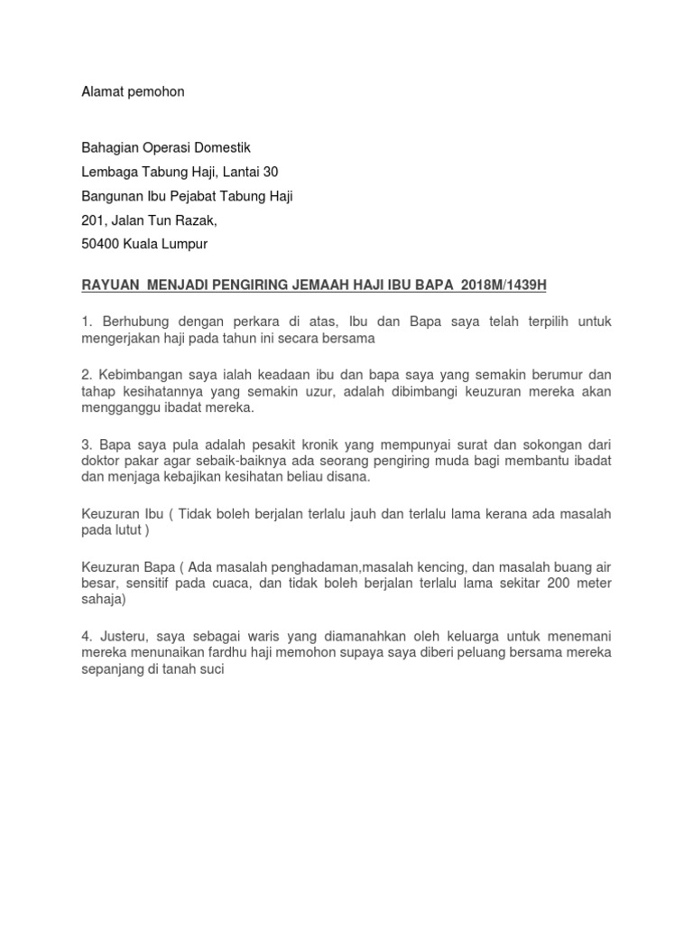 Surat Rayuan Tabung Haji Untuk Ibubapa