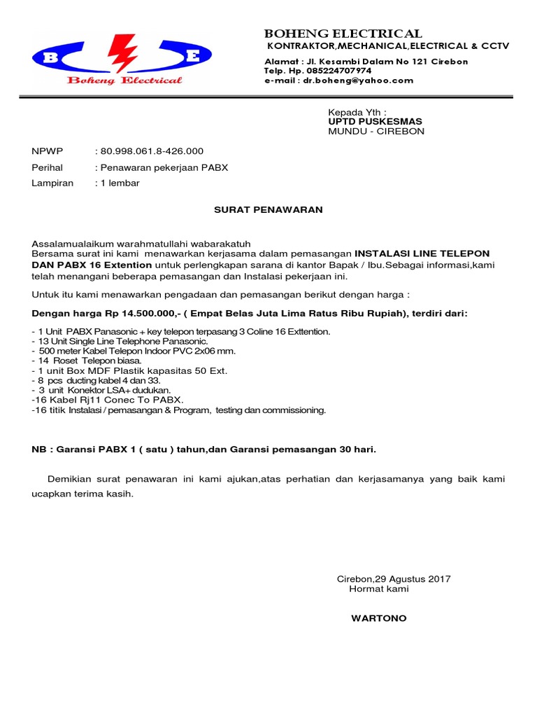 Surat Penawaran Pabx Puskesmas