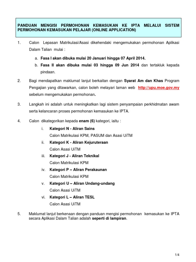 Permohonan Kemasukan Ke Ipta Politeknik Pengajian Ijazah Pertama Lepasan Stpm Stam Lulusan Stam Tahun 2014 Atau 2013 Sahaja Lepasan Diploma Setaraf Pdf Document
