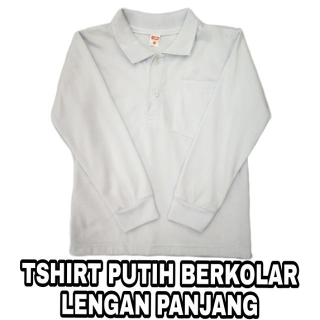 T Shirt Putih Berkolar Tangan Panjang Kain Cotton Sekolah Pra Baju Sukan Berkolar Lazada