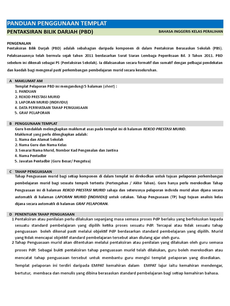 Panduan Pengisian Templat Pelaporan Pentaksiran Bilik Darjah Pbd 2018 Malaysiaway