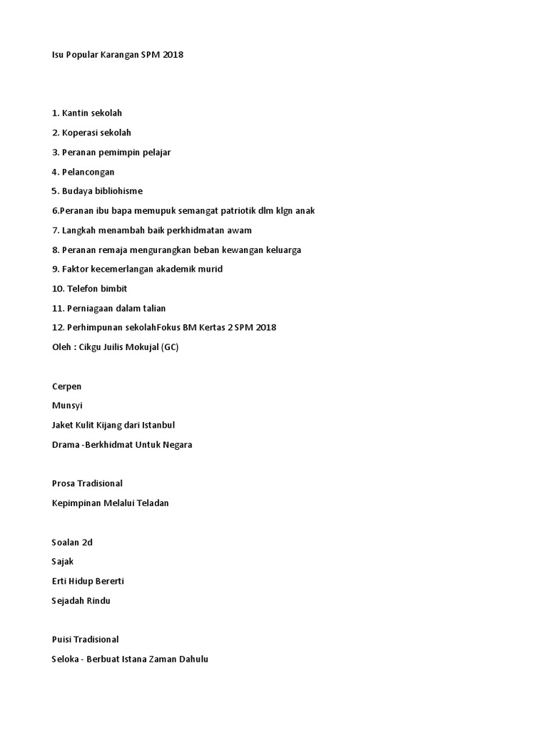 Isu Popular Karangan Spm 2018