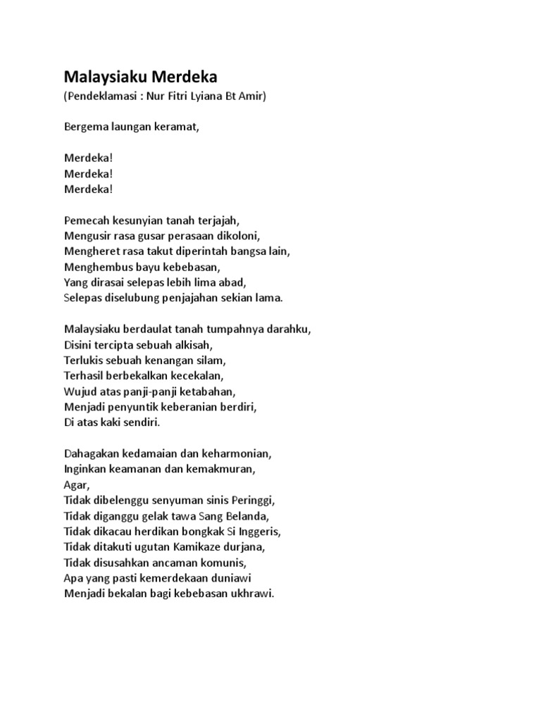 Tanah Airku Sajak Kemerdekaan Sayangi Malaysiaku