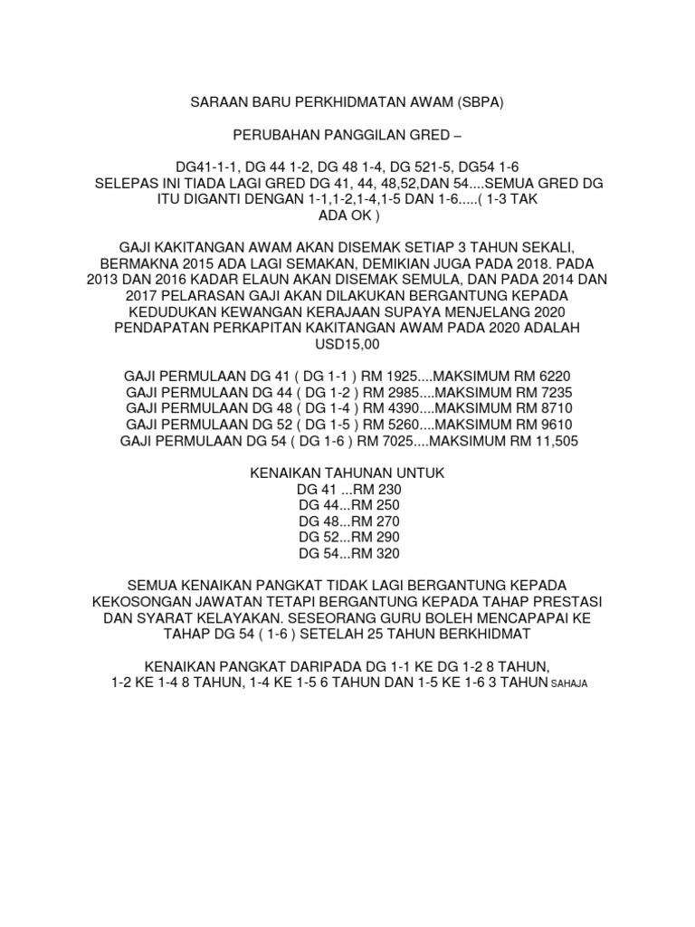 Jadual Gaji Bagi Perkhidmatan Pendidikan Gaji Bagi Perkhidmatan Pendidikan Berijazah I Gred Gaji Ssm Dg41 Dg44 Ii Kod Gaji Komputer Ssm Dg41000 Dg44000 Pdf Document
