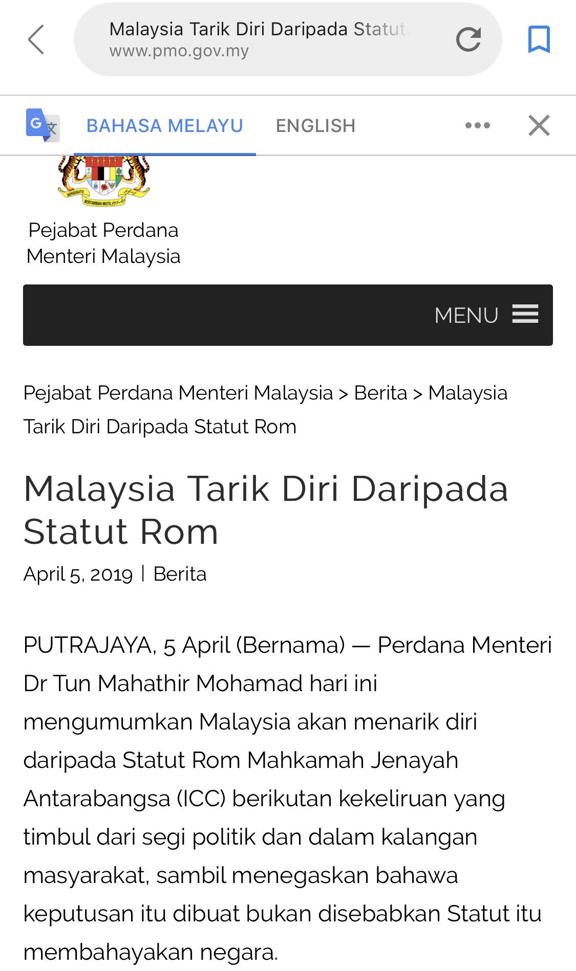 اهيري انوار On Twitter Pada 5 April 2019 Pm Telah Umum Kerajaan Menolak Statut Rome Pada 4 March 2019 Terpapar Laporan Malaysia Persidangan Un Berhubung Statut Rome Wajah Ybm Kula Diterbitkan