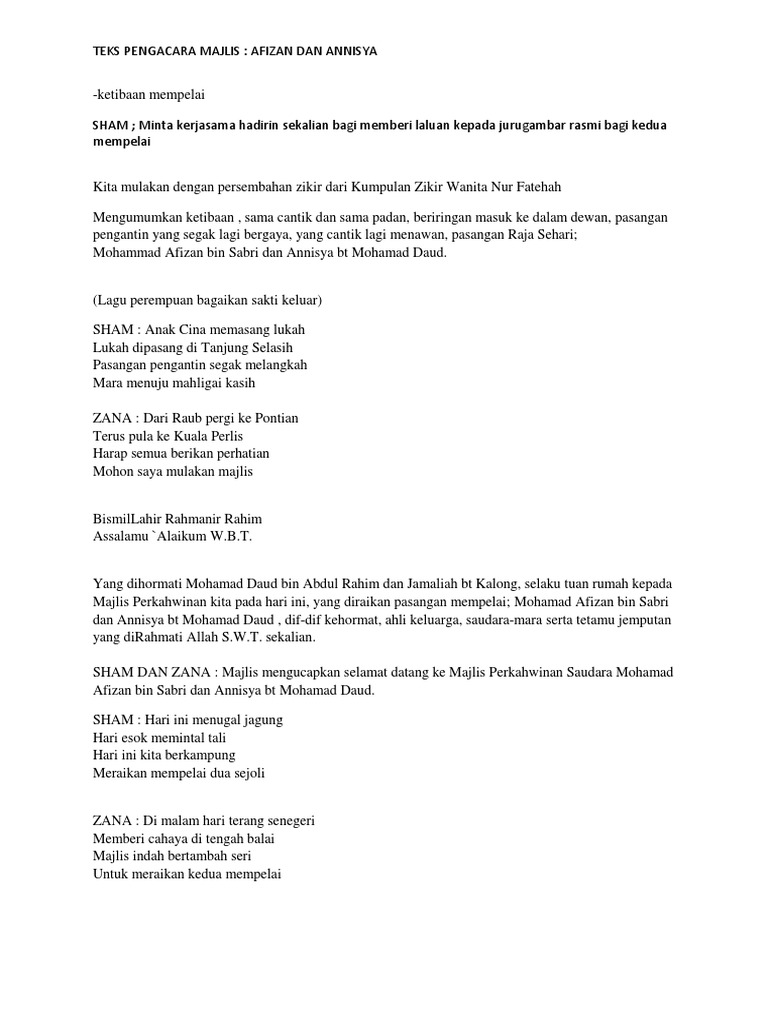 Doc Copy Of Skrip Mc Majlis Persandingan Ikram Dan Roziani 25dis Azlan Uda Academia Edu