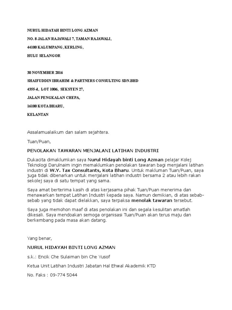 Contoh Surat Permohonan Latihan Industri Praktikal Mysemakan Cuitan Dokter