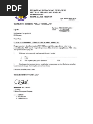 Contoh Surat Peringatan Bayaran Yuran Pibg