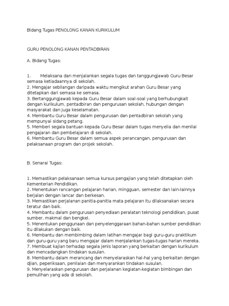 Bidang Tugas Penolong Kanan Kurikulum Pdf Document