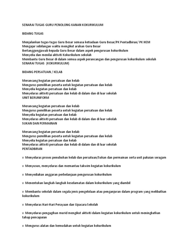 Doc Ii Senarai Tugas Guru Penolong Kanan Kokurikulum Fauziah Idris Academia Edu