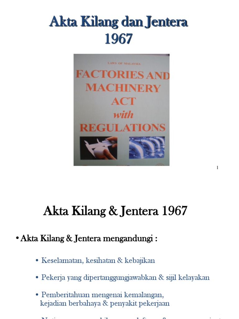 Tajuk1 1 Akta Kilang Dan Jentera 1967 Comp Utm My Peraturan Peraturan Akj 1967 Dandang Stim Dan Pengandung Tekanan Tak Berapi Lif Barangan Dan Pengangkutan Elektrik Pemagaran Jentera