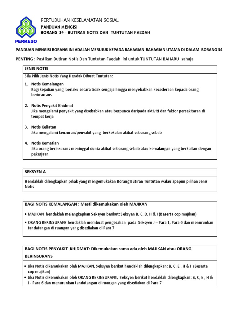Senarai Semak Borang 34 Pertubuhan Keselamatan Sosial Senarai Semak Dokumen Permohonan Borang 34 Butiran Notis Dan Tuntutan Faedah Maklumat Orang Course Hero