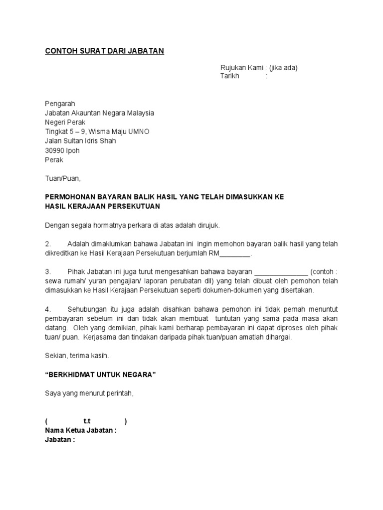 Tuntutan Contoh Surat Bayaran Balik