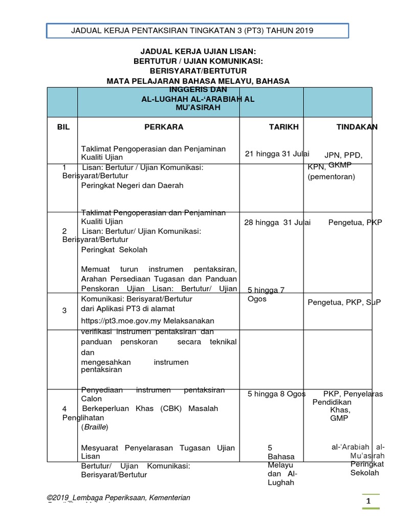 3 Jadual Kerja Pt3 Tahun 2019 Docx