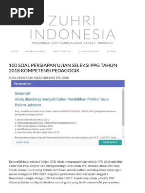 100 Soal Persiapan Ujian Seleksi Ppg Tahun 2018 Kompetensi Pedagogik Zuhri Indonesia