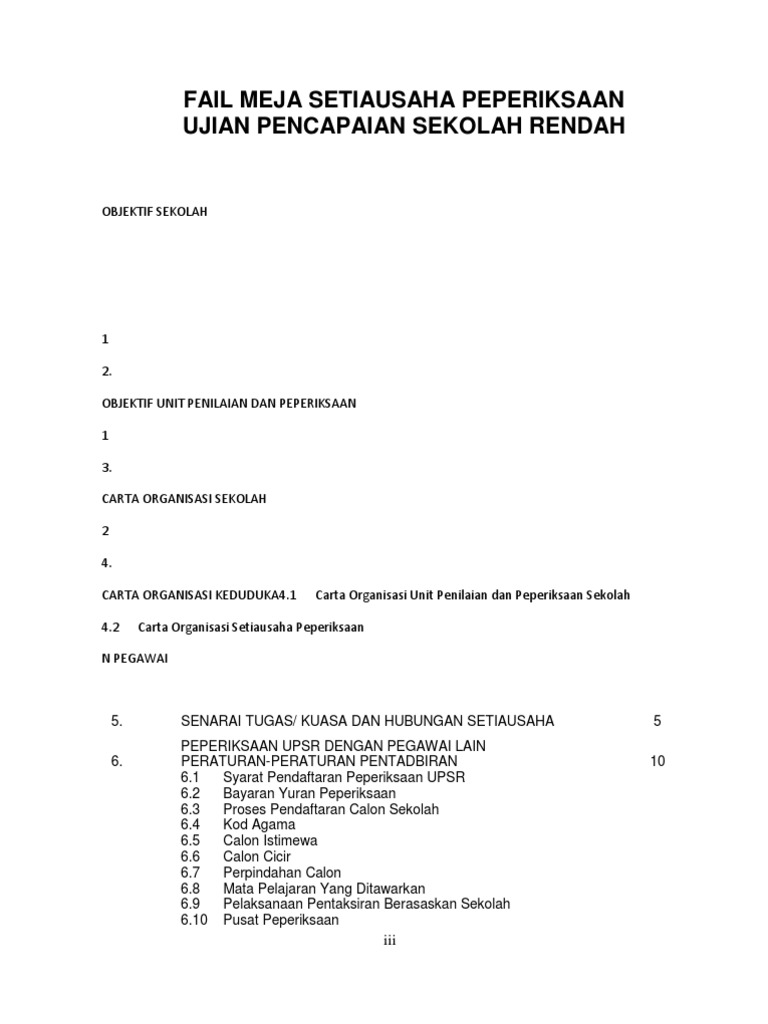 Fail Meja Setiausaha Peperiksaan Ujian Pencapaian Sekolah Rendah
