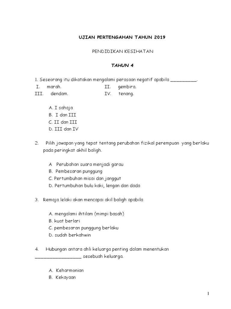Ujian Pertengahan Tahun Bahasa Melayu Kertas 1 Tingkatan 4