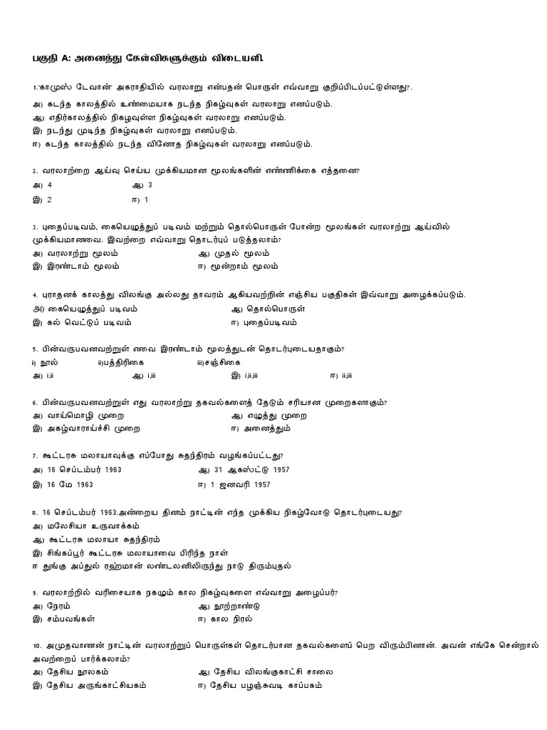 Kertas Ujian Sejarah Tahun 4 Sjk Versi Tamil