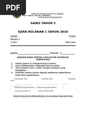 Soalan Ujian Bulanan Sains Tahun 5 2019 Helowins