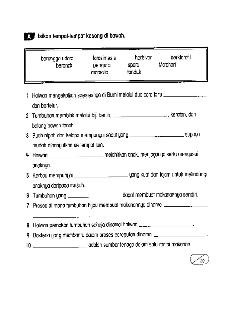 Soalan Ujian Sains Tahun 5 Bahagian A