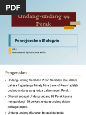 Pdf Undang Undang Sembilan Puluh Sembilan Warisan Persuratan Melayu Negeri Perak