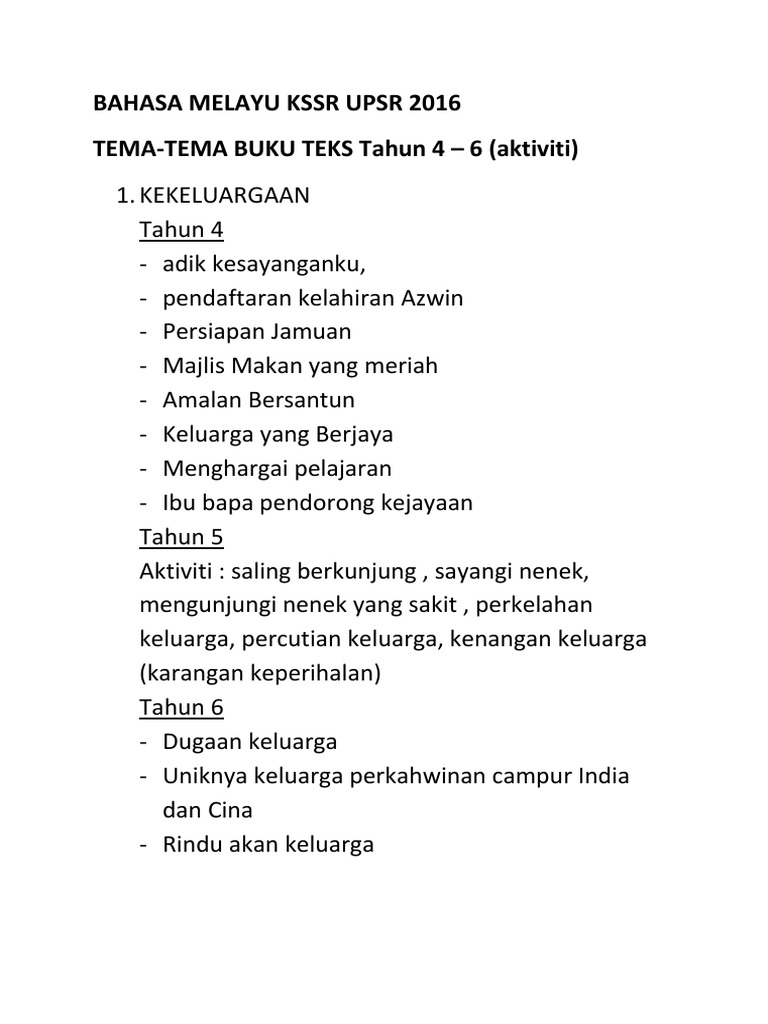 Bahasa Melayu Kssr 4 6 Upsr 2016 Tema Kekeluargaan Docx
