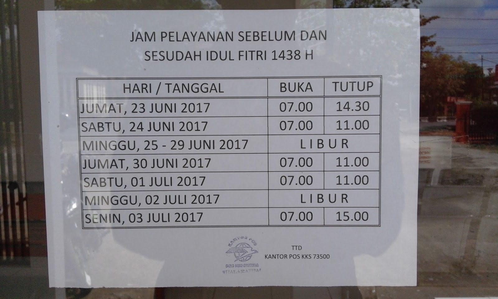 Jam Pelayanan Kantor Pos Sebelum Dan Sesudah Idul Fitri 1438 H 2017 M
