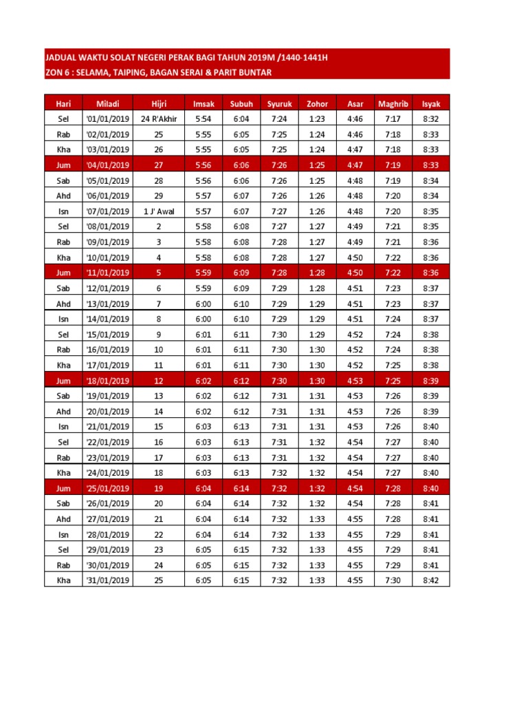 Waktu Solat Zon 6 Selama Taiping Bagan Serai Parit Buntar Pdf Document
