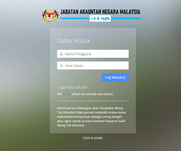 Login Egumis Sistem Semakan Wang Tak Dituntut Online