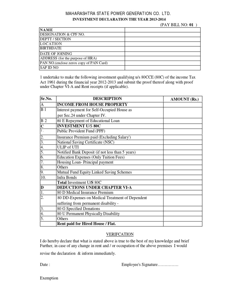 Income Tax Saving Form 13 14 Pdf