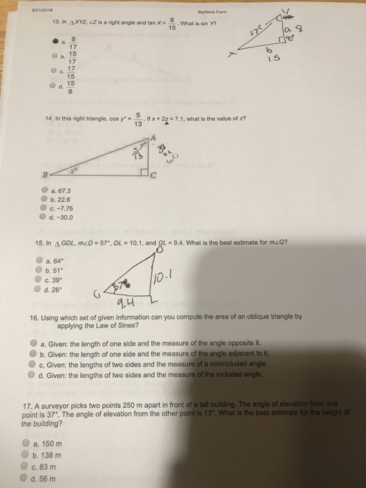 Solved Mywork Form 13 In Axyz Iz Is A Right Angle And T Chegg Com