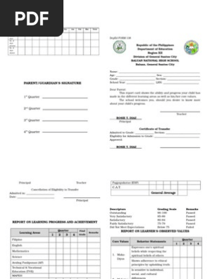 Deped Form 138 Gr I Vi Social Institutions Social Sciences
